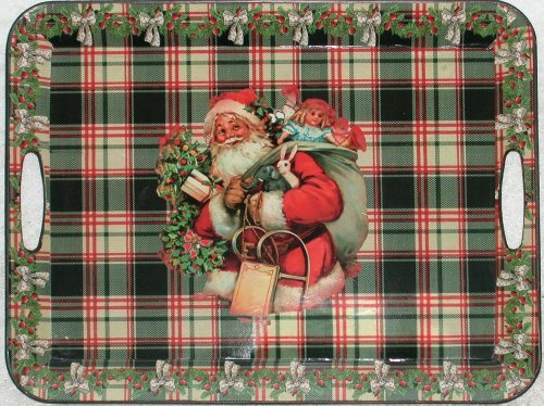 Idea Natale: Vassoio da portata con decorazione babbo natale; Misure 40,5x31,5cm