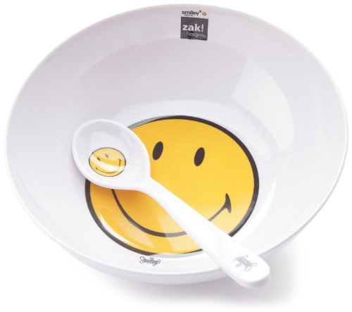 Zak Designs 6187-2302, Set da colazione: ciotola per cereali e cucchiaino, diametro: 17 cm, Smiley, colore: Bianco